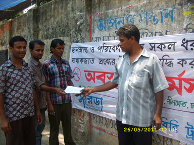 ২৬ মে ২০১১ স্বেচ্ছাসেবী সংগঠন সেইভ দি রুর্যাল ডেভেঃ এসোঃ (সারডা) এবং ডাব্লিউবিবি ট্রাস্ট যৌথভাবে বাকুশাহ মার্কেট, নীলতে, ঢাকায় “ জনস্বাস্থ্য ও পরিবেশ রায় সকল ধরনের তামাকজাত দ্রব্যের উপর কর বৃদ্ধি করা হোক” শীর্ষক অবস্থান কর্মসূচী অনুষ্ঠিত হয়। এতে সারডা’র সহ-সভাপতি মুহাম্মদ শাহান শাহ (তাপস) এর সভাপতিত্বে সারডা’র স্বেচ্ছাসেবীরা মার্কেটের বিভিন্ন দোকানের আসন্ন বাজেটে তামাকজাতপন্যে কর বৃদ্ধির জনসচেতনতার সৃষ্ট্রির জন্য লিফলেট বিতরণ করে।
