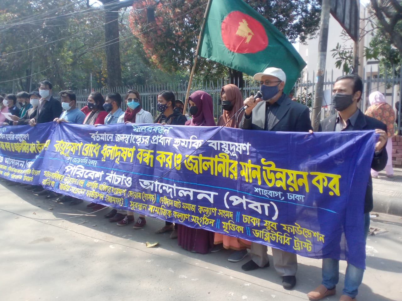 ধূলাদূষণের উৎস চিহ্নিত করে ধূলাদূষণ বন্ধ করার কার্যকর পদক্ষেপ এবং দেশে জ্বালানী হিসাবে ব্যবহত নিম্নমানের কয়লা আমদানী বন্ধ করা ও তরল জ্বালানী হিসেবে নিম্নমানের ডিজেল, অকটেন, পেট্রোল বাজারের যাতে বিক্রি না হতে পারে তার কার্যকারী ভূমিকা পালনের দাবীতে পরিবেশ বাঁচাও আন্দোলন (পবা) ও ওয়ার্ক ফর এ বেটার বাংলাদেশ ট্রাস্টসহ সমমনা ১৬ টি সংগঠন- মানবাধিকার উন্নয়ন কেন্দ্র, নাগরিক অধিকার সংরক্ষণ ফোরাম (নাসফ), দেবীদাস ঘাট সমাজ কল্যাণ সংসদ, পুরান ঢাকা নাগরিক উদ্যোগ, বিডি ক্লিক, পরিবেশ উনড়বয়ন সোসাইটি, গ্রিনফোস, ঢাকা যুব ফাউন্ডেশন, সুবন্ধন সামাজিক কল্যাণ সংগঠন, বানিপা, জাতীয় সচেতন ফ্উান্ডেশন(জাসফা), পরিবেশ আন্দোলন মঞ্চ, মৃত্তিকা, পরিস্কার ঢাকা, বারসিক এর যৌথ উদ্যোগে ১২ ফেব্রুয়ারি ২০২২, শনিবার, সকাল ১১ টায় শাহবাগস্থ জাতীয় জাদুঘরের সামনে " বর্তমানে জনস্বাস্থ্যের প্রধান হুমকি বায়ুদূষণ; বায়ুদূষণ রোধে ধূলাদূষণ বন্ধ কর ও জ্বালানীর মান উন্নয়ন কর" শীর্ষক মানববন্ধন অনুষ্ঠিত হয়।