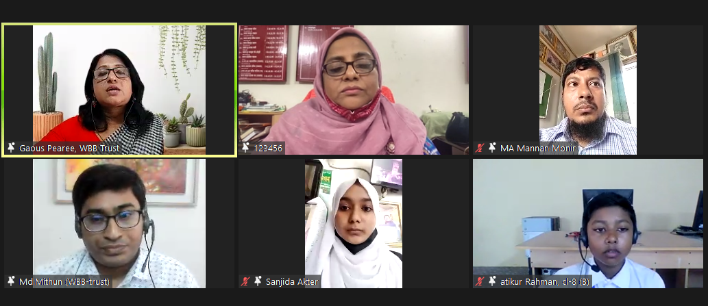 ওয়ার্ক ফর এ বেটার বাংলাদেশ ট্রাস্ট এর পরিচালক গাউস পিয়ারী’র সভাপতিত্বে এবং সহকারি প্রকল্প কর্মকর্তা মো: মিঠুনের সঞ্চালনায় আয়োজনে বক্তব্য রাখেন ঢাকা আইডিয়াল ক্যাডেট স্কুলের প্রধান শিক্ষক এম. এ. মান্নান মনির, রায়ের বাজার উচ্চ বিদ্যালয়ের প্রধান শিক্ষক মেহেরুন্নেসা, রায়ের বাজার উচ্চ বিদ্যালয়ের ৮ম শ্রেণীর শিক্ষার্থী আতিকুর রহমান এবং ঢাকা আইডিয়াল ক্যাডেট স্কুলের ১০ম শ্রেণীর শিক্ষার্থী সানজিদা আক্তার।