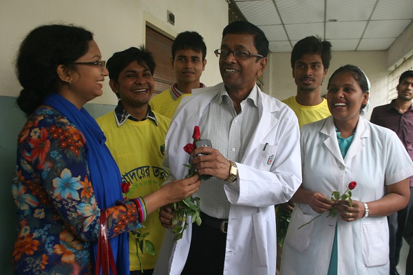 তথাকথিত অভিযোগ নয়, বরং সীমিত লোকবল ও সম্পদ দিয়ে বছরে লক্ষ লক্ষ পরিচয়হীন, ধনী-গরীব মানুষকে স্বাস্থ্যসেবা দেয়ায় বঙ্গবন্ধু শেখ মুজিব মেডিক্যাল বিশ্ববিদ্যালয় (বিএসএমএমইউ) হাসপাতালের কর্মীদের ফুল দিয়ে শুভেচ্ছা জানিয়েছেন স্বেচ্ছাসেবী সংগঠনের সদস্যরা। স্বেচ্ছাসেবীরা জনগণের টাকায় সরকার পরিচালিত হাসপাতাল সম্পর্কে দৃষ্টিভঙ্গি পরিবর্তনে সকলের প্রতি আহবান জানায়। আজ সকালে ১৭টি স্বেচ্ছাসেবী প্রতিষ্ঠানের উদ্যোগে বিএসএমএমইউ কর্মীদের ফুলে শুভেচ্ছার মাধ্যমে প্রতীকীভাবে দেশের রাষ্ট্রায়ত্ত্ব হাসপাতালের কর্মীদের প্রতি কৃতজ্ঞতা জ্ঞাপন করে।