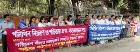 পলিথিন নিষিদ্ধে কিছু কিছু কারখানা ও বাজারে সরকারিভাবে বিচ্ছিন্ন কিছু অভিযান পরিচালনা করলেও পাটের ব্যাগ সহজলভ্য করতে কার্যকর উদ্যোগ পরিলক্ষিত হচ্ছে না। এমতাবস্থায় পলিথিন নিয়ন্ত্রণ ও পাটজাত দ্রব্য সহজলভ্য করার দাবীতে পরিবেশ বাঁচাও আন্দোলন (পবা), ওয়ার্ক ফর এ বেটার বাংলাদেশ (ডাব্লিউবিবি) ট্রাস্ট, আইনের পাঠশালা, ইয়থ সান, ঢাকা যুব ফাউন্ডেশন, পুরান ঢাকা নাগরিক উদ্যোগের যৌথ আয়োজনে আজ ২৫ নভেম্বর ২০১৫, বুধবার, সকাল ১১টায় শাহবাগস্থ চারুকলা অনুষদের সামনে মানববন্ধনের আয়োজন করা হয়। ...