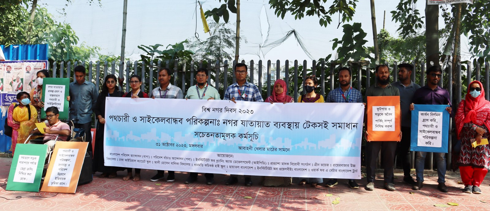 অক্টোবর ২০২৩ সকাল ১১.০০ টায় বিশ্ব নগর দিবস ২০২৩ উদযাপন উপলক্ষ্যে বাংলাদেশ পরিবেশ আন্দোলন (বাপা), পরিবেশ বাঁচাও আন্দোলন (পবা), ইনস্টিটিউট ফর প্ল্যানিং অ্যান্ড ডেভেলপমেন্ট (আইপিডি), প্রত্যাশা মাদক বিরোধী সংগঠন, গ্রীন ভয়েজ, রায়েরবাজার উচ্চ বিদ্যালয়, ঢাকা আইডিয়াল ক্যাডেট স্কুল, আলী হোসেন বালিকা বিদ্যালয়, ধানমন্ডি কচিকন্ঠ হাই স্কুল, ছায়াতল বাংলাদেশ, ইনস্টিটিউট অব ওয়েলবীইং বাংলাদেশ, এবং ওয়ার্ক ফর এ বেটার বাংলাদেশ ট্রাস্ট-এর সম্মিলিত উদ্যোগে আয়োজিত “পথচারী ও সাইকেলবান্ধব পরিকল্পনাঃ নগর যাতায়াত ব্যবস্থায় টেকসই সমাধান” শীর্ষক সচেতনতামূলক কর্মসূচিতে বক্তারা এ কথা বলেন।