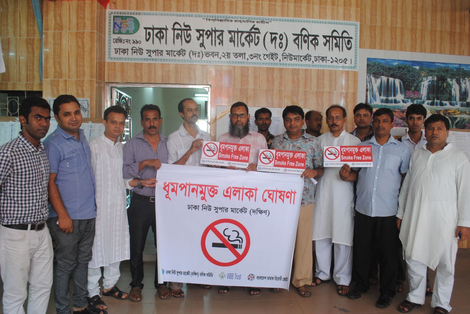 Dhaka New Super Markte (South) has been declared smoke free at 29 September. It is one of famous market for shoping in this capital city Dhaka of Bangladesh. This market should keep smoke free this oath initiated through making awareness on health hazards of smoking & passive smoking among visitors, show owners & employees of shop inside of market.