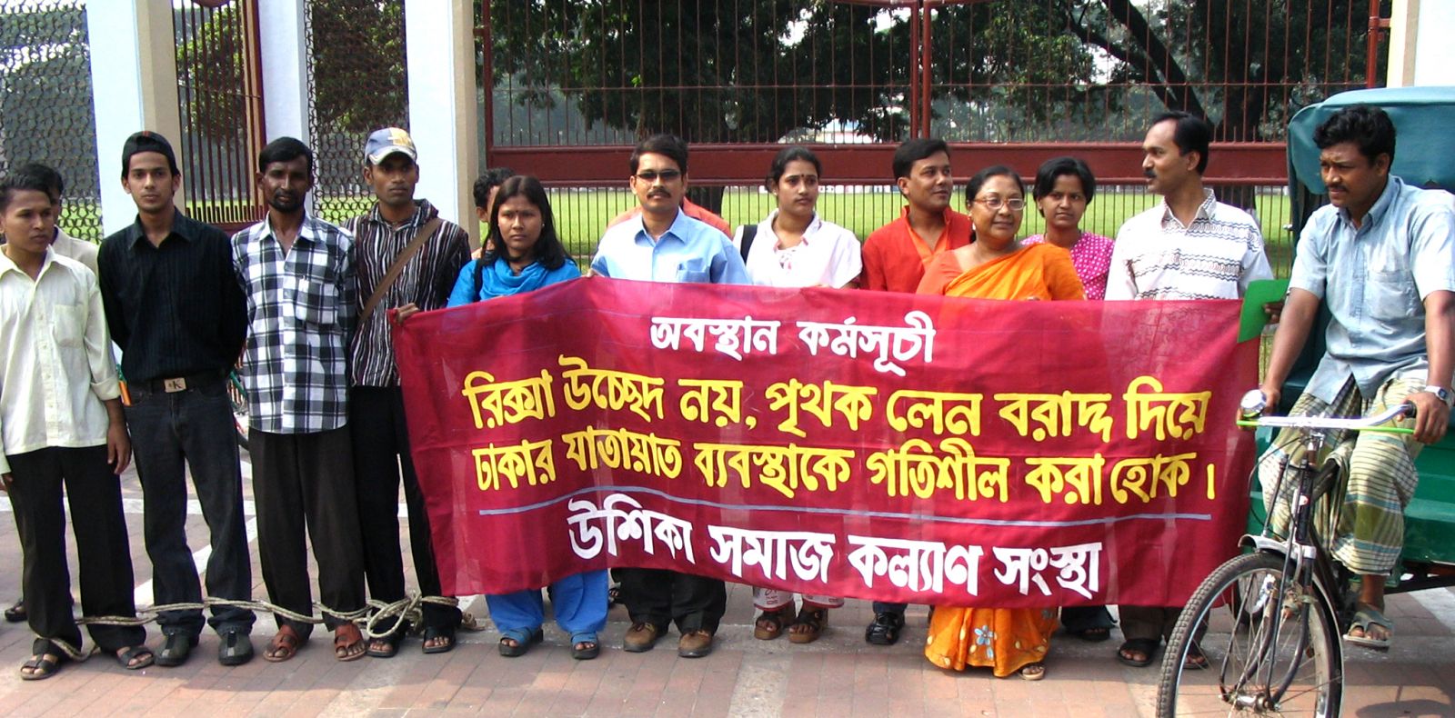 Roads for People's and WBB Trust member organization USHIKA organized a demonstration demanding rickshaw lanes on Dhaka city roads on 19 November 2005.