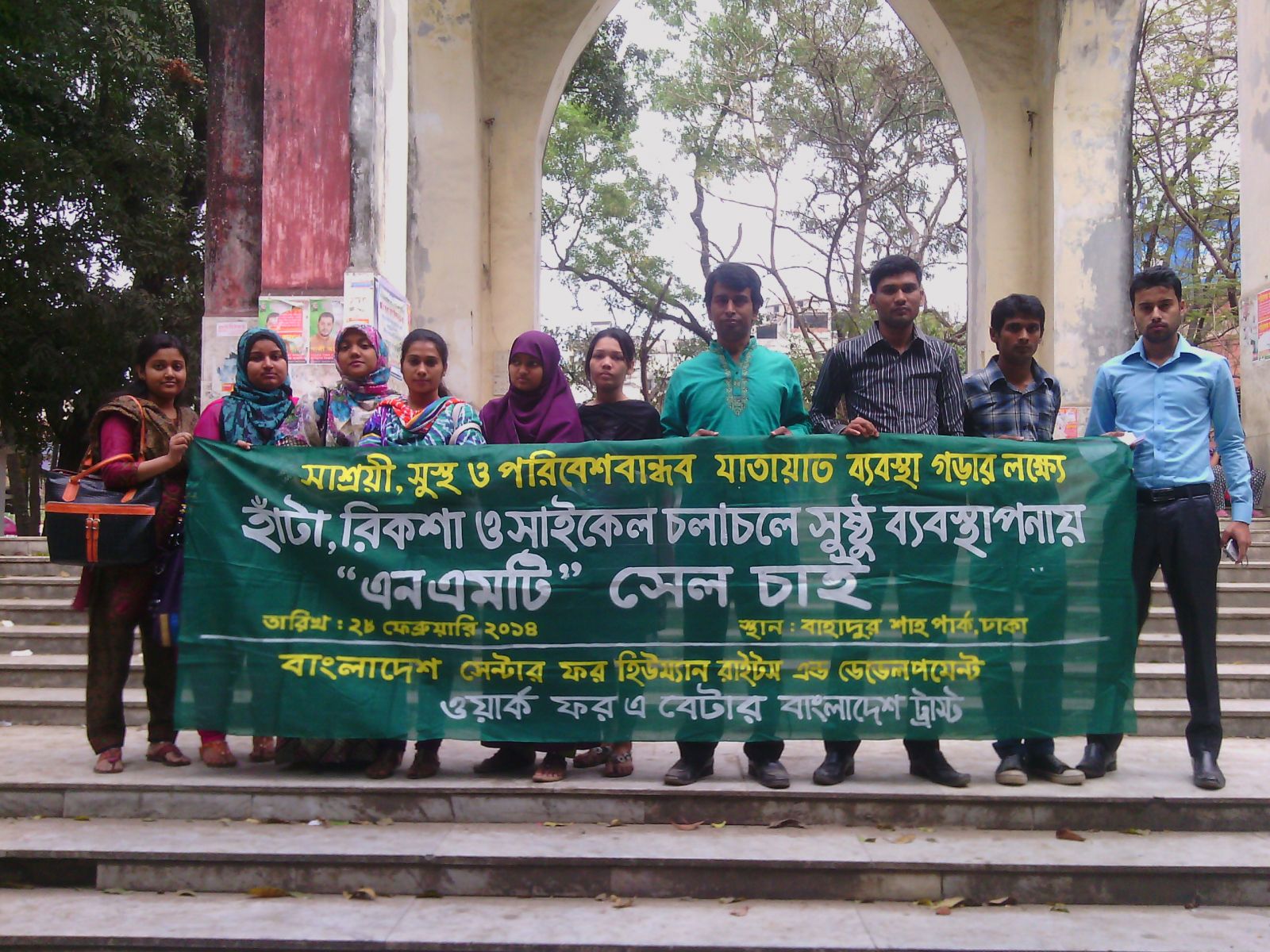 On 28 February 2014, Work for a Better Bangladesh Trust and Bangladesh Centrefor Human Rightsand Development organized a campaign on demanding Walking, rickshaw and bicycle lanes in BahaduraShahPark.