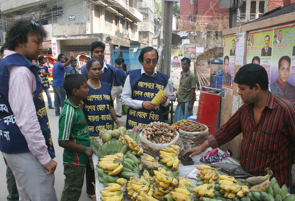 Throwing shop’s garbage in the roads is resulting to dirty and polluted environment. As a result risk of various diseases are increasing. At the same time the locality is losing its beauty. A clean and tidy community increases dignity of the community people. On 5 March, 2015 at 11:30 am community people of 34 no ward (former 47), Work for A Better Bangladesh (WBB) Trust, Poribesh Bachao Andolon (POBA), Dhanmondi Kachikantha School, Alif Ideal Public School jointly organized a leaflet campaign from Rayer Bazar Boishakhi Playground to Sankar Bus Stand. The campaign was held to increase awareness among shopkeepers. In the campaign shopkeepers were requested to keep a basket for garbage and to clean their shop premises before closing it at night.