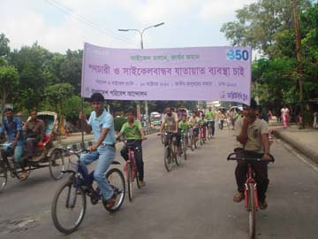 Bangladesh Paribesh Andolon (Bapa) and Work for a Better Bangladesh (WBB) Trust on 10th October 2010 called for establishing an eco-friendly transport system and promoting bicycling and walking, to reduce carbon emissions and check climate change.