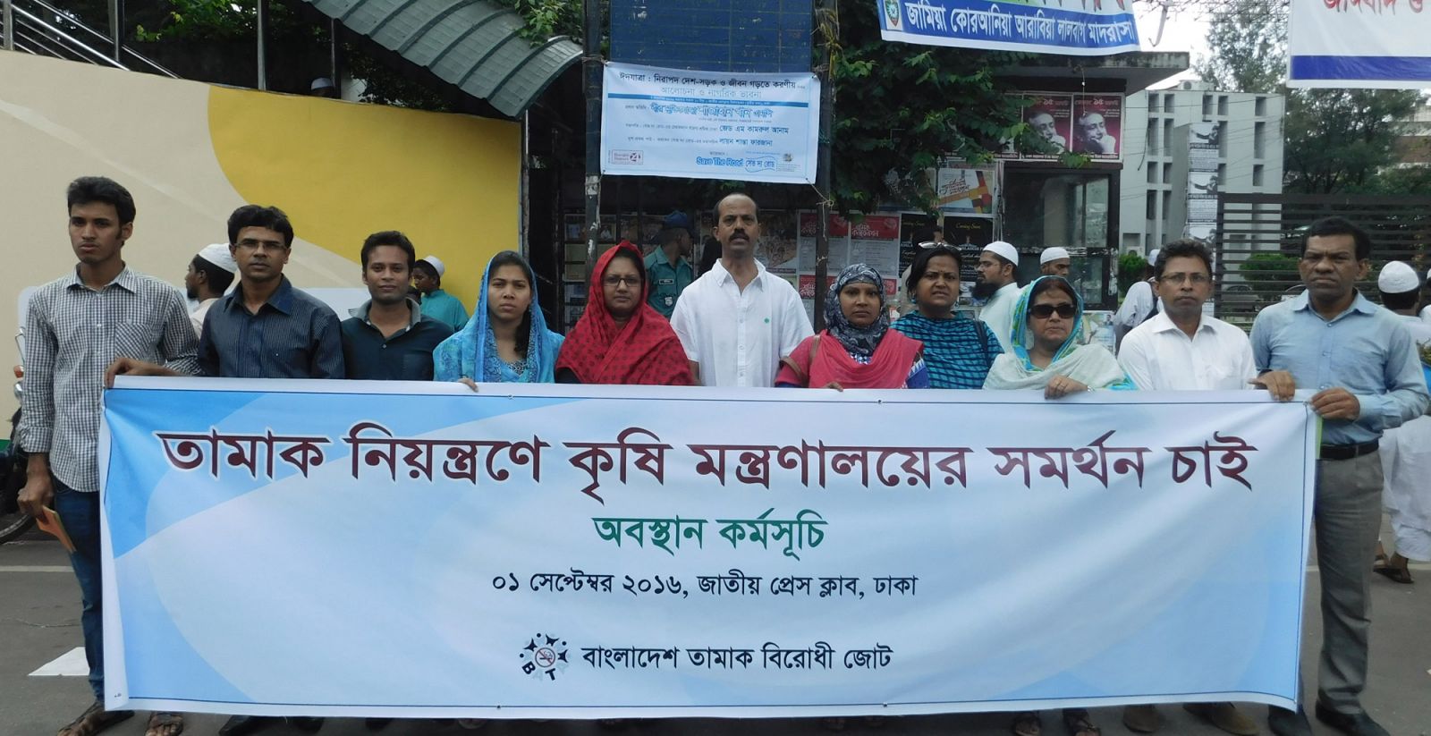 Urging for taking quick steps to control tobacco cultivation and to ensure responsibility and accountability of Ministry of Agriculture, Bangladesh Anti-Tobacco Alliance (BATA) organized a human chain program in front of National Press Club on 1 September 2016.