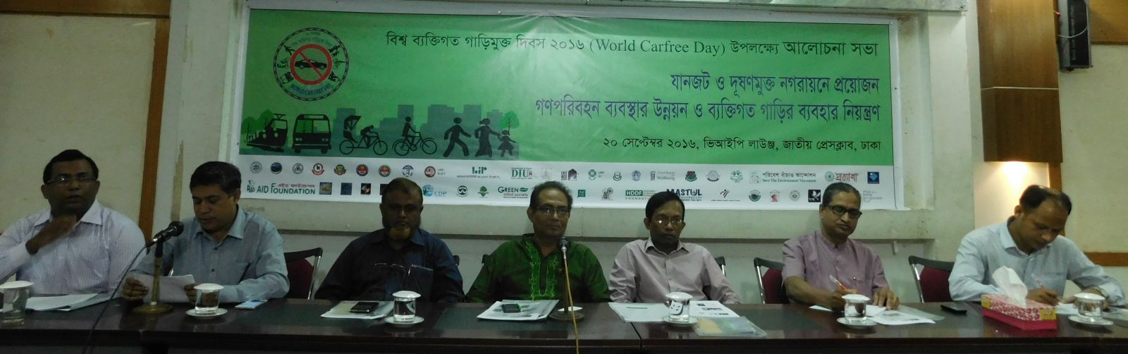 On 20th September 2016, 11am, World Carfree Day Celebration Committee, consisted of 44 government and non-government organizations and coordinated by Dhaka Transport Coordination Authority (DTCA), organized a discussion meeting on ‘Control Private Cars, Develop Public Transport for a City without Congestion and Pollution’ at VIP Lounge of National Press Club.