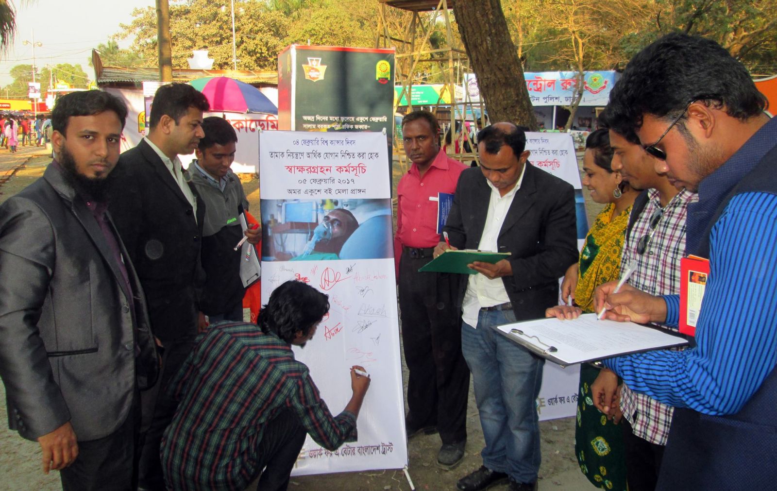 On 5 February 2017, a signature campaign has been organized by Work for a Better Bangladesh (WBB) Trust urging for sustainable funding for tobacco control at Ekushey Book Fair on World Cancer Day-2017.