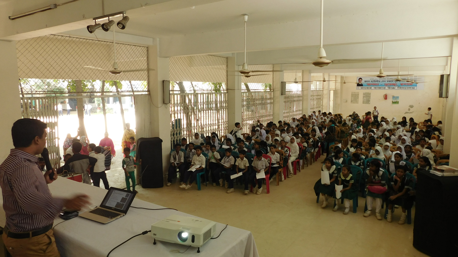 Our daily life has reduced the opportunity for physical activity. Children are also not different from it. As a result children are suffering from obesity, type 2 diabetes, insomnia and other diseases. Lack of enough open space is one of the major reasons behind this. They have negative impact on their mental health as well. In one hand, usually children do not take part in required physical exercise for not having sufficient space at home and enough playgrounds in cities. On the other hand, children may do necessary physical exercise like walking to school every day. Again, huge traffic jam is another great issue in Dhaka city, which turns into severe at the time of going to and coming back from schools. However, it is possible to reduce through going to school on foot. As a result, walking to schools will help children to be physically fit and in the same way environment will be less polluted and transportation cost will be saved. Speakers spoke up about the issue on 04 August 2016 on awareness training program in Rayerbazar High School at Dhanmondi for students about safely going to school through walking.