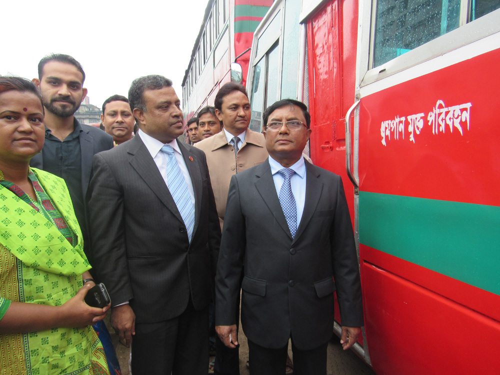 After the enactment of Tobacco Control Act, smoke-free signage stickershas established in all the transport of Bangladesh Road Transport Corporation (BRTC).However, because the previously installed stickers have been damagedue to long time spent, BRTC has taken initiatives to set up permanent sign in the buses.On 09 December 2017, Mr. Md. Nazrul Islam, Secretary of Roads and Highway Department; Mr. Syed Ahmed,Executive Director of DTC and Mr. Md. Farid Ahmad Bhuiyan, Chairman of BRTC made a good start of this initiative through setting a “Smoke-free Transport” in a bus at Kamalapur BRTC bus depot.