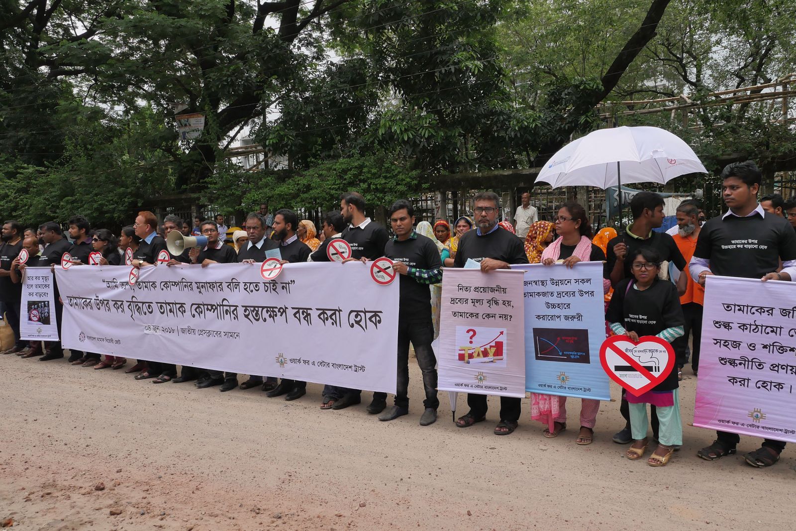 On 4 June 2018, in a human chain program titled on “Prevent TI interference in raising tobacco tax”, speakers urged this to the related authority of the government. The program was jointly organized by Bangladesh Anti Tobacco Alliance (BATA) and Work for a Better Bangladesh (WBB) Trust- supported by The Union in front of National Press Club.