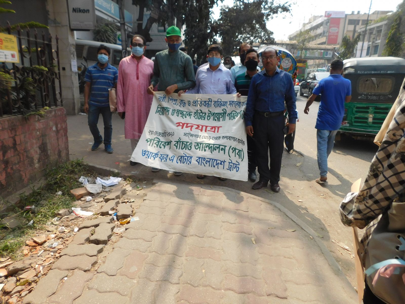 Chairman of Save the Environment Movement (POBA) Abu Naser Khan, Headmaster of Dhaka Ideal Cadet School M A Mannan Monir, Member of POBA MD Selim, Senior Project Officer of Work for a Better Bangladesh (WBB) Trust Ziaur Rahman, Policy Officer of Institute of Wellbeing (IWB) ANM Masum Billah Bhuyian etc were present in the walking rally.