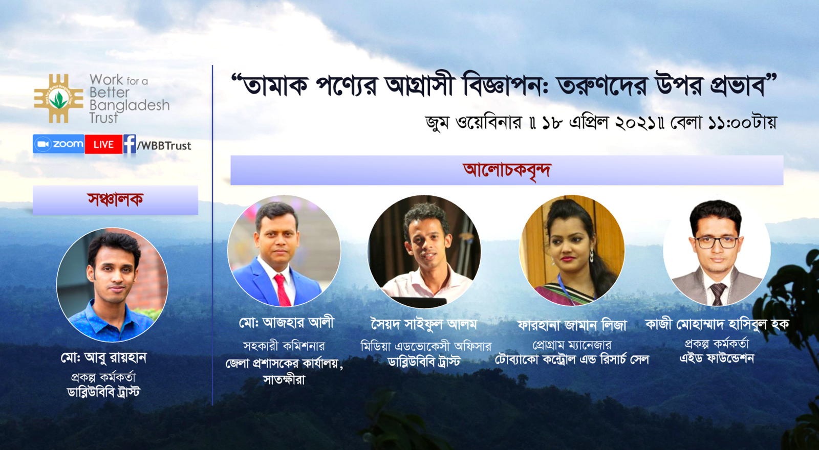 Bangladesh Anti-Tobacco Alliance (BATA) and Work for a Better Bangladesh Trust (WBB) organized the webinar titled “Aggressive Advertising of Tobacco Products: Impact on Youth.”