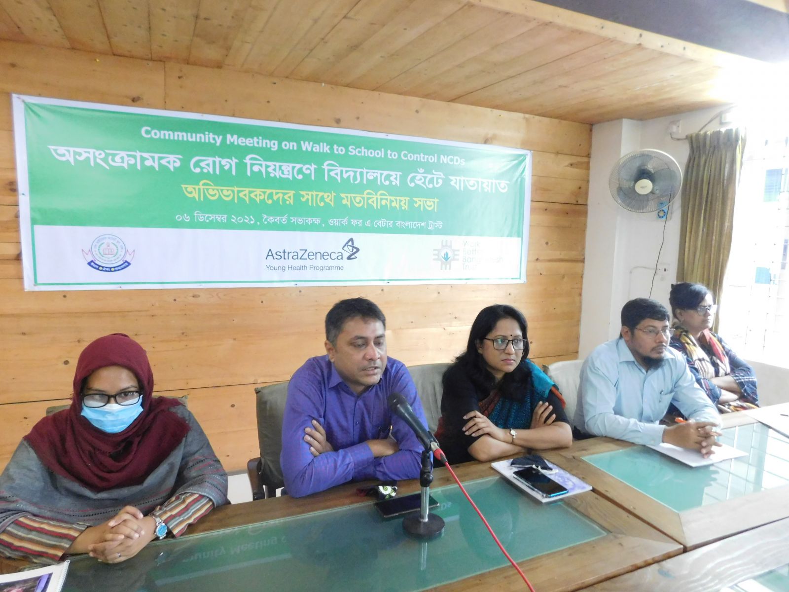 Although Bangladesh has succeeded in controlling communicable diseases, it is lagging far behind in controlling non-communicable diseases. Non-communicable diseases account for 67% of all deaths in the country. Behavioral changes, such as healthy diet, regular and adequate physical activity, avoiding harmful drugs and tobacco products, etc., can play a significant role in controlling non-communicable diseases. To prevent children and adolescents from consuming unhealthy diet and smoking, effective measures should be taken to stop the advertisement of these products. Besides, to motivate people to walk to short distances and to school, it is necessary to create a safe and convenientwalking environment. AstraZeneca, Dhaka Ideal Cadet School and Work for a Better Bangladesh Trust jointly organized a sharing meeting with parents of students from Dhaka Ideal Cadet School at the organization's conference room titled 'Walk to School to Control Non-communicable diseases’ on 6 December 2021 at 11.00 am and speakers opined such in the meeting.