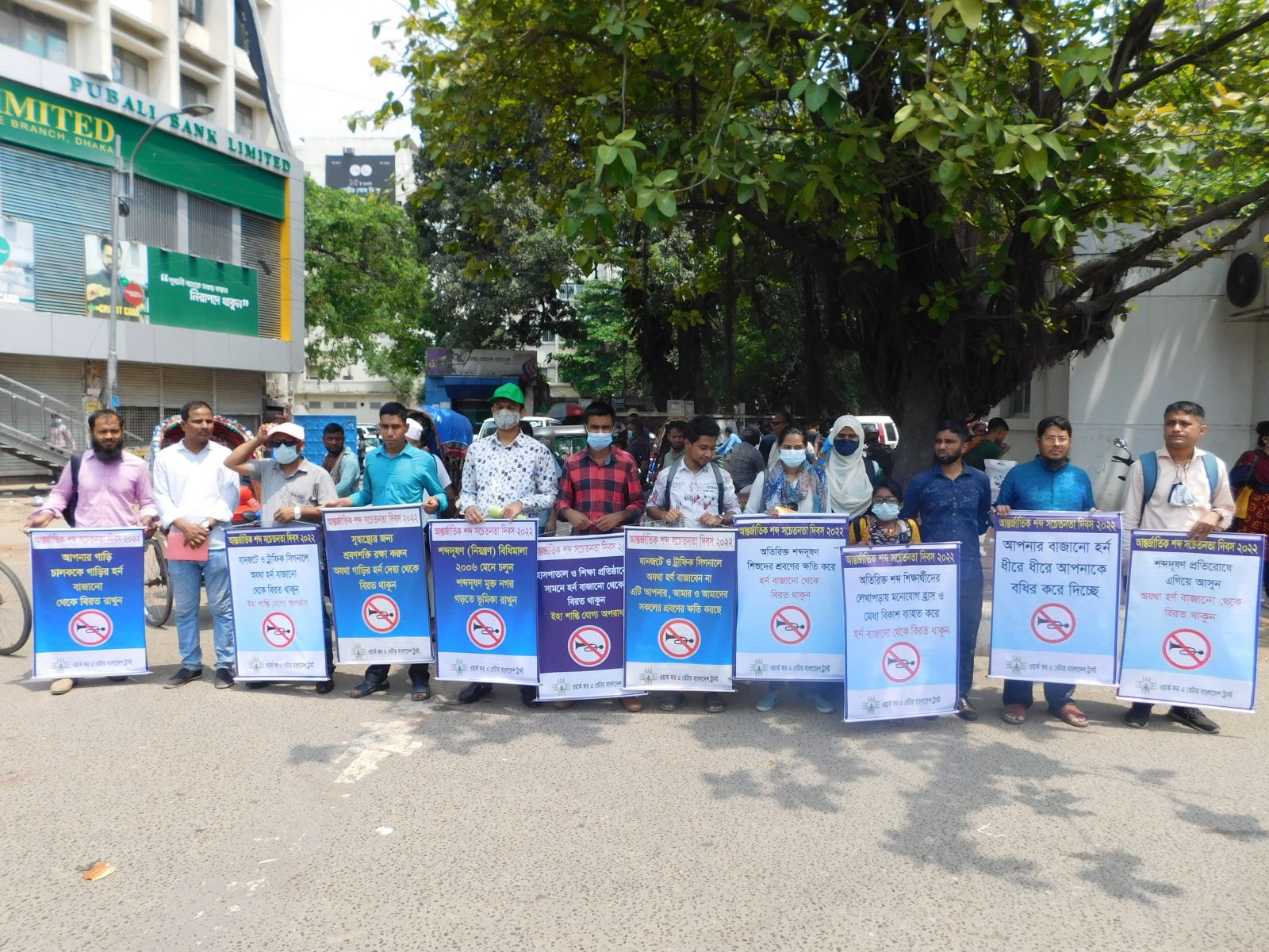 On March 27, 2022, at 11.00 am at Shahbagh, an awareness campaign was organized jointly by Save the Environment Movement (POBA), Rayer Bazar High School, Dhaka Ideal Cadet School, Life Serve Bangladesh, The Institute of Wellbeing Bangladesh (IWB), Carfree Cities Alliance Bangladesh on “Avoid Unnecessary Honking to Protect Hearing and Public Health” and speakers opined such in the campaign. Flowers and leaflets were distributed among the motor vehicle drivers from the camping to motivate them to avoid unnecessary honking.
