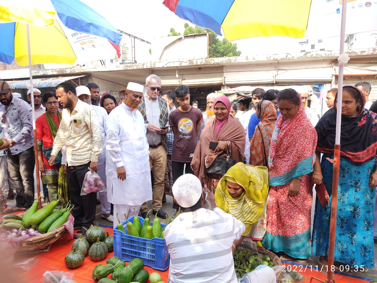 On 18 November 2022 at 9.00 AM speakers opined such in the inauguration ceremony of farmers’ market at Ward No. 55 of Dhaka South City Corporation, Jhauchar Main Road, in front of Titas Gas Office. The event was jointly inaugurated by Dhaka South City Corporation, Food and Agriculture Organization of the United Nations, Department of Agriculture Extension and Work for a Better Bangladesh Trust with the support of Embassy of the Kingdom of the Netherlands.