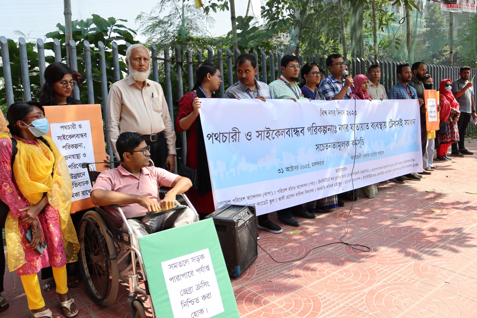 60 % of people in Dhaka city commute on foot, while only 5-7% of people in the city own private cars. Despite that, various projects revolved on private cars are being adopted, and infrastructure is being built in the urban transport plan. There is no alternative to ensuring a pedestrian and cycle-friendly environment to build a sustainable and inclusive city and meet the commuting needs of most people. Therefore, to raise awareness at the policy-making level to take initiatives to increase investment, the theme of the World Cities Day in 2023 is "Financing sustainable urban future for all".
