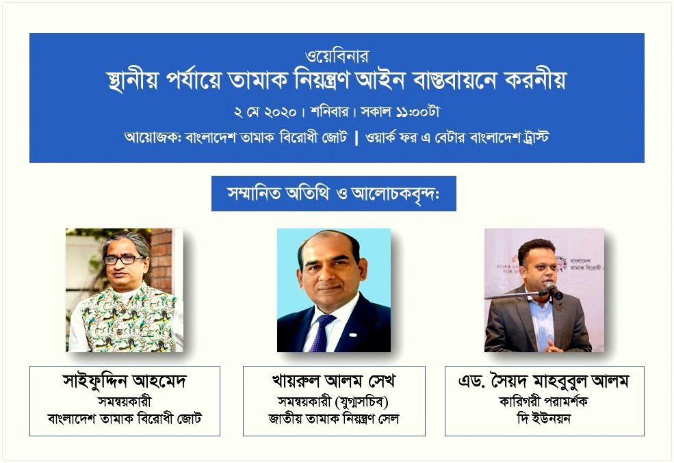 "Skills Enhancement in Tobacco Control Law Enforcement" workshop held on July 9, 2020 at 11 am jointly organized by Bangladesh Anti-Tobacco Alliance and WBB Trust with the support of The Union. Representatives of 80 non-governmental organizations from 8 divisions of the country attended at the workshop. ...