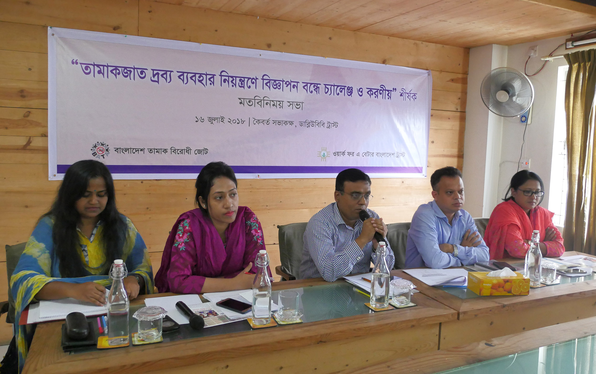 Observing in different parts of the country, it is found that tobacco companies continue advertising tobacco products using various strategies. So all the tobacco company should be brought under punishment for violating the law. Activists urged this to respective government authorities in a view exchange meeting on “Challenges and actions for stopping tobacco advertisement to control tobacco uses” on 16 July 2018 organized by BATA and WBB Trust at WBB Trust’s meeting room. ...