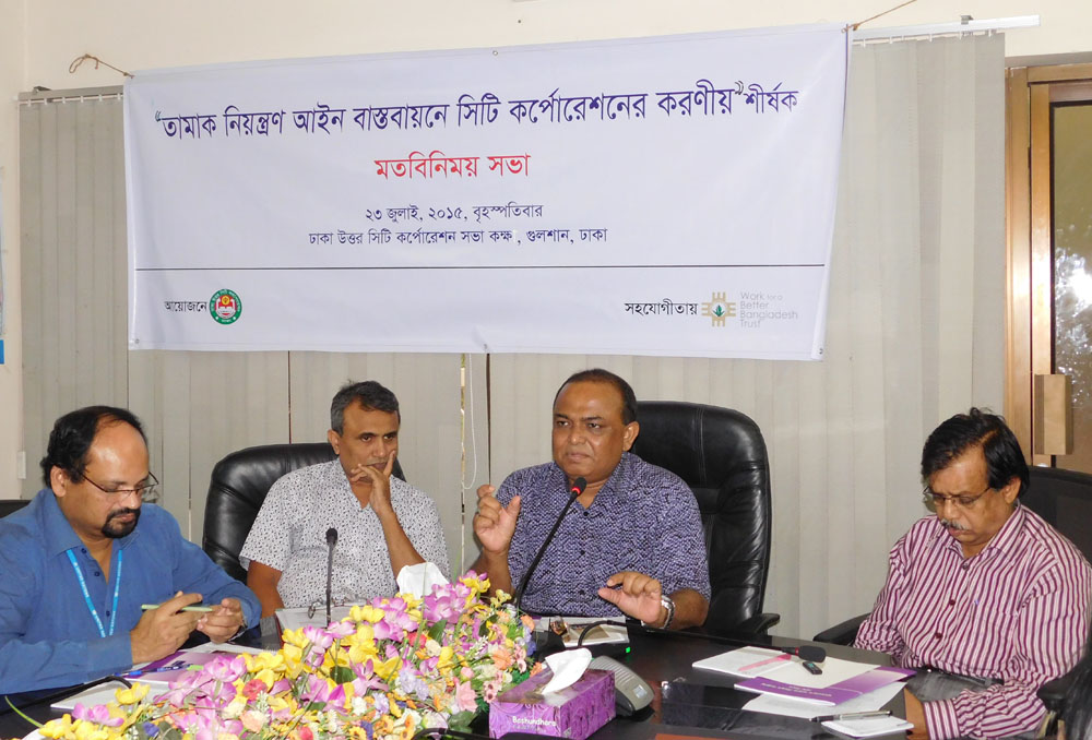 Anti-tobacco organizations appealed to the govt. to stop illegal advertisement of tobacco products by implementing Smoking and Tobacco Products Usage (Control) Act 2005. 28th july 2015 a view exchange meeting arranged jointly by Work for a Better Bangladesh (WBB) Trust, BCHRD and Rainbow Women and Child Welfare Foundation in local shop owners associations meeting room at Azimpur. ...