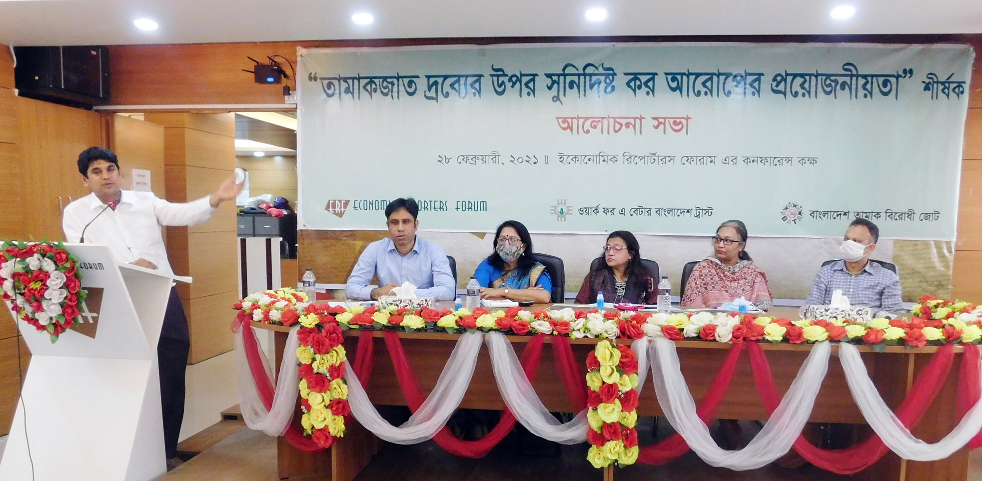 a specific tax is imposed on all tobacco products, it will play a significant role in tobacco control, besides increasing the government's revenue. On the other hand, to prevent revenue evasion, a robust national tax policy should be formulated as soon as possible, as announced by the Honorable Prime Minister Sheikh Hasina, in addition to stopping the retail sale of cigarettes. They said these things in a press conference organized at Tafazzal Hossain Mia Hall of the National Press Club ...
