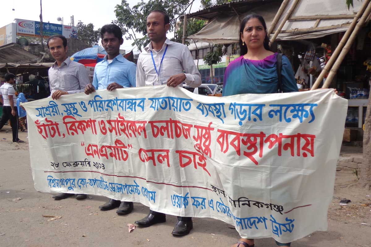 On 28 February 2014, Work for a Better Bangladesh Trust and Bisbanathapur co - operative Development Program organized a campaign on demanding Walking, rickshaw and bicycle lanes in Manikgonj.