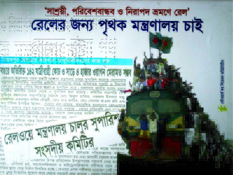 Rail is safe, economy and environment friendly mode of transport for travel. This poster hang countrywide by local organization to demand on from a separate ministry for railway. ...