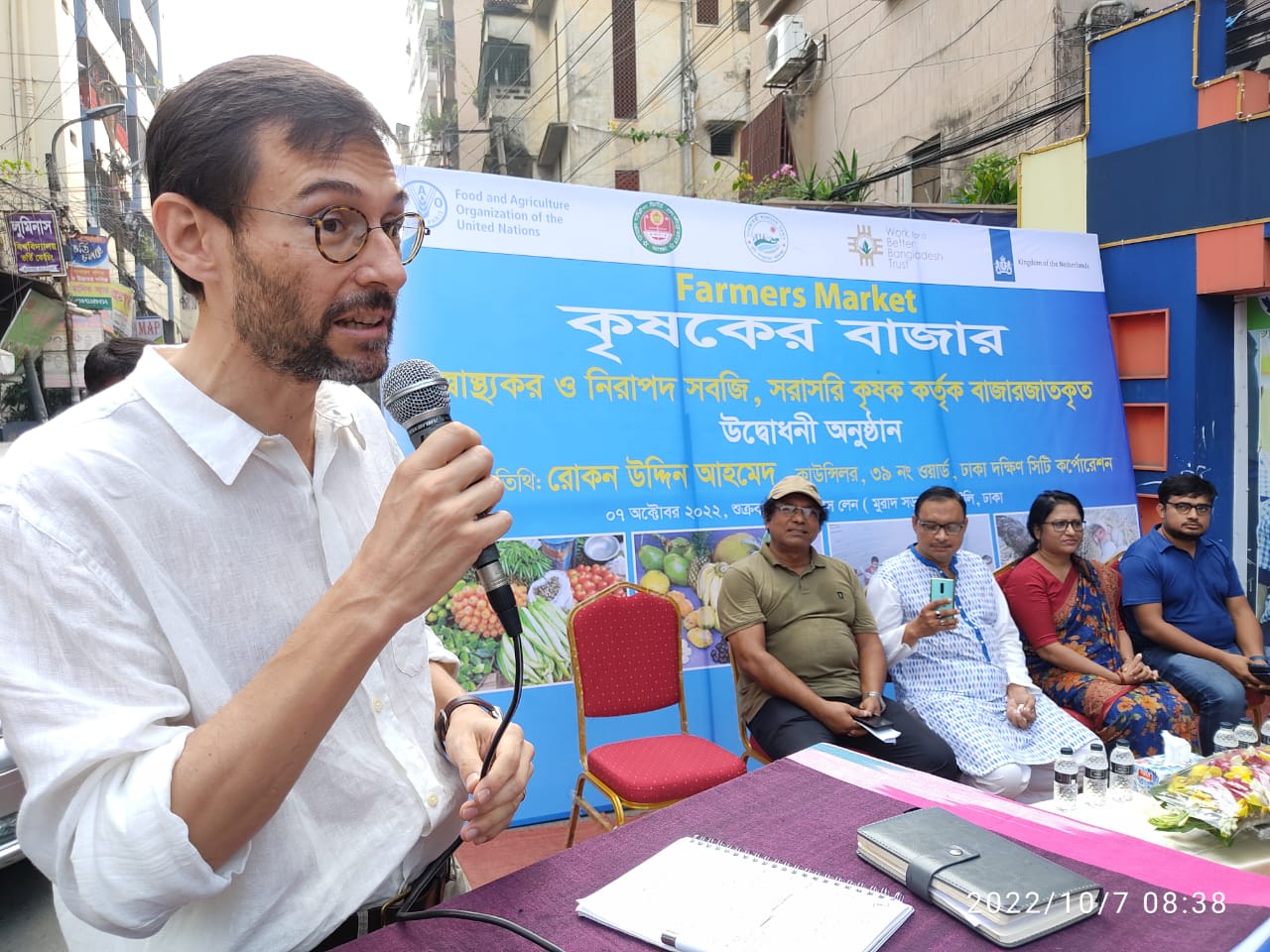 21 October 2022 speakers opined such in the inauguration ceremony of farmers’ market at ward no.26, DSCC. The event was jointly organized by Dhaka South City Corporation, Food and Agriculture Organization of the United Nations, Department of Agriculture Extension and Work for a Better Bangladesh Trust with support of the Embassy of the Kingdom of the Netherlands. 10 farmers, who practice safe farming and endorsed by DAE, from Vakurta, Savar will sell their vegetables and fruits every Friday from 7 ...