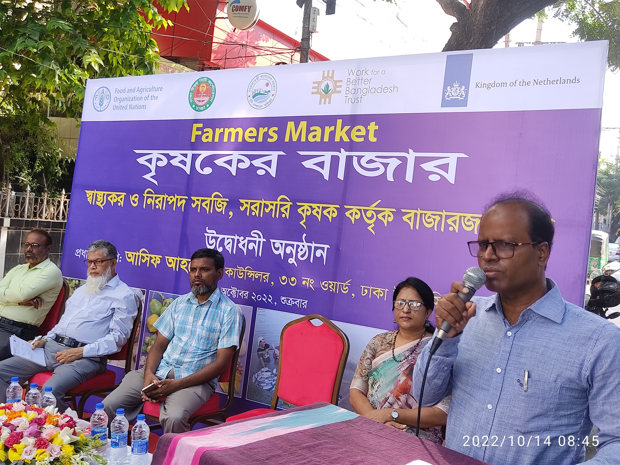 October 2022 the inauguration ceremony of the farmers’ market in ward no.33 of DNCC was jointly organized by Embassy of the Kingdom of the Netherlands, Dhaka North City Corporation, Department of Agricultural Extension, Food and Agriculture organization of the United Nations, and Work for a Better Bangladesh Trust. And speakers opined such during the inauguration ceremony. This market will operate in front of Jamia Islamia Muhammadi Ashraful Madaris- Etimkhana at Mohammadi Housing Society each Friday from 7 AM to 2 PM ...